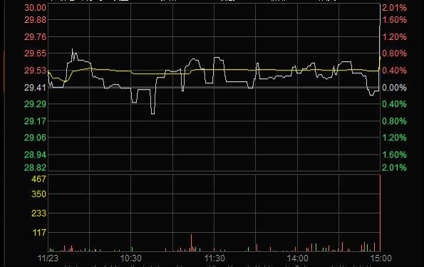 2011年11月23日臨近收盤期間(14:56:24至14:59:28),任某某為了在短期內(nèi)拉升股價(jià),大量申報(bào)買入“X”4筆共計(jì)63,000股,占尾市階段市場申買量的比例高達(dá)75.54%;委托價(jià)格由29.60元升至32.00元,每筆均高于當(dāng)時(shí)市場上的買1檔價(jià)格,三分鐘內(nèi)將股價(jià)由29.35元拉升至30元收盤,拉升幅度達(dá)2.21%。(見下圖)