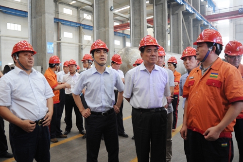 李勇武會(huì)長(zhǎng)一行領(lǐng)導(dǎo)首先乘車視察了魯西化工新材料產(chǎn)業(yè)園各生產(chǎn)裝置和項(xiàng)目建設(shè)現(xiàn)場(chǎng),并分別在粉煤連續(xù)氣化裝置和己內(nèi)酰胺裝置的總控室、重型裝置制造車間、安全環(huán)境應(yīng)急防控中心進(jìn)行了下車參觀。李會(huì)長(zhǎng)每到一處都細(xì)致的看,認(rèn)真的聽(tīng),與現(xiàn)場(chǎng)裝置人員進(jìn)行親切交談,仔細(xì)了解相關(guān)情況。