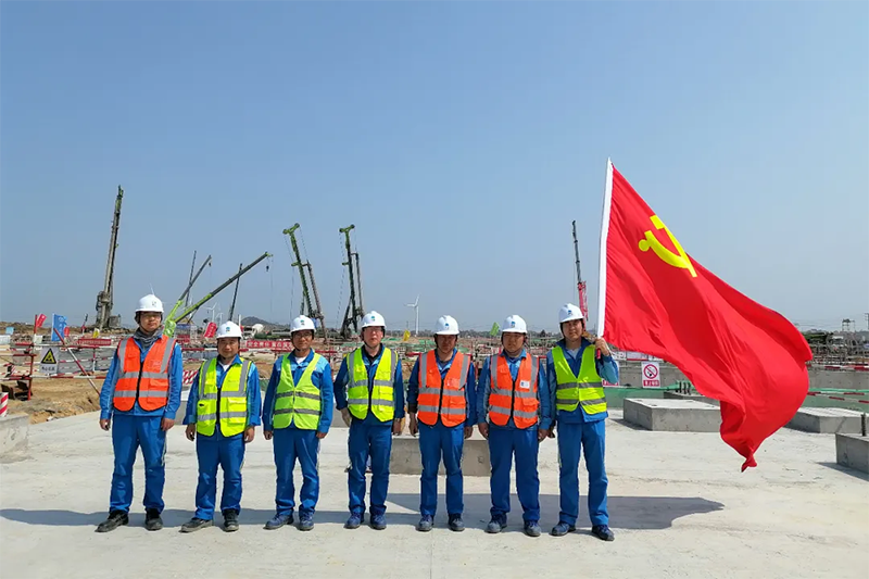 初到項目現場,一條泥濘的土路橫亙眼前,一場大雨過后,車輪深陷泥濘,為了趕在臺風雨季前完成道路硬化,項目部經理劉西仲帶領4名骨干力量,一天近十幾個小時盯在亂石堆里,連續(xù)三天“白加黑”作業(yè),累了就在臨時板房砼地面上坐一坐,渴了喝口涼水繼續(xù)干,五天搞定了21車渣土、340m³砼的挖掘運輸,完成2263平方砼基礎的找平、夯實工作,曾經的“爛泥灘”變成了“石渣路”。黨旗飄揚處,盡是鏗鏘步履,道路的高效改善,為后續(xù)設備運輸和人員通行奠定了基礎。