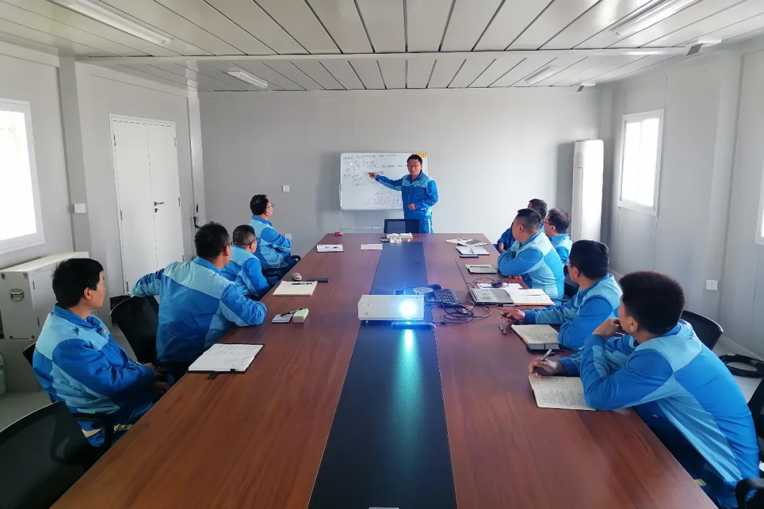 施工未展開,安全必先行。項目部建立常態(tài)化安全培訓機制,在每天的安全課堂上,安全員帶領員工進行“沉浸式”安全培訓,用真實事故案例制作VR模擬課件,讓施工人員在虛擬場景中感受違規(guī)操作的危害。培訓后,施工人員需通過“理論+實操”的三方考核,才能上崗,確保“每個人過關才上崗”。每周結合現場工況開展定制化安全規(guī)范培訓,同步融入國際安全管理理念及發(fā)包方核心要求,動態(tài)更新安全知識庫,確保團隊實時掌握最新行業(yè)標準與技術規(guī)范。