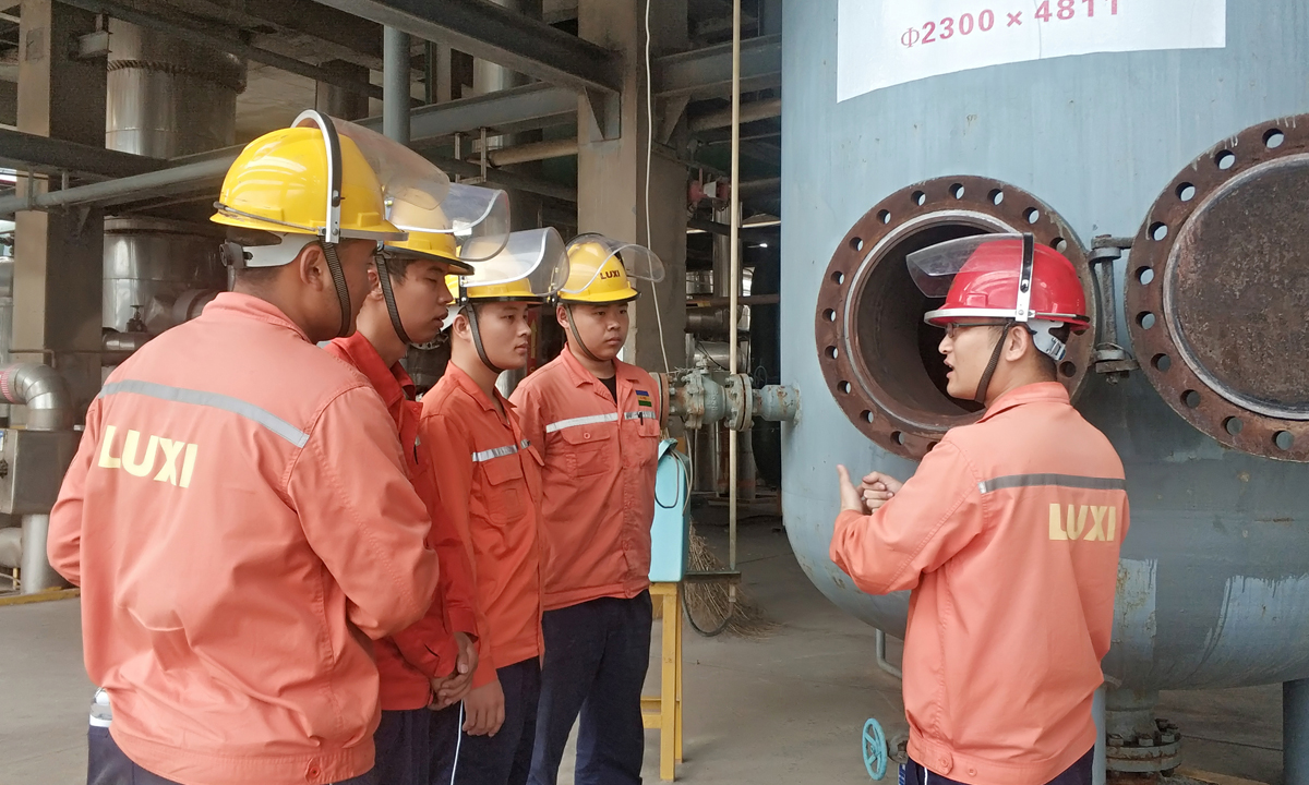 “脫氨塔只有大修的時(shí)候才會(huì)打開(kāi),今天重點(diǎn)給大家講一下脫氨塔內(nèi)部結(jié)構(gòu)、運(yùn)行原理……”8月20日這天,13名新進(jìn)大學(xué)生在魯西集團(tuán)有機(jī)胺事業(yè)部DMF裝置工藝技術(shù)員李玉超的講解下,了解了合成塔觸媒、脫氨塔分布器、換熱器等現(xiàn)場(chǎng)設(shè)備各部件結(jié)構(gòu)、參數(shù)性能等。李玉超坦言,“今年6月份新進(jìn)廠的員工已經(jīng)基本掌握了工藝流程、崗位操作知識(shí),但設(shè)備結(jié)構(gòu)和原理一直是學(xué)習(xí)的難點(diǎn)。為了彌補(bǔ)這個(gè)問(wèn)題,我們利用檢修的機(jī)會(huì),組織新進(jìn)員工進(jìn)行現(xiàn)場(chǎng)培訓(xùn),近距離觀察了解設(shè)備內(nèi)部構(gòu)造、運(yùn)作原理,通過(guò)看得見(jiàn)、摸得著的培訓(xùn),更能讓大家易懂易學(xué)易記?!?/span>
