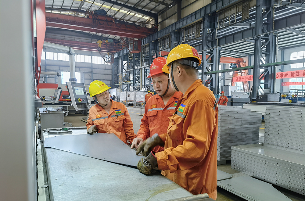支部委員劉存杰告訴記者,黨支部深入開展學史力行活動,每天職能部門的黨員干部在做好本職工作的同時,對所有施工作業(yè)點進行巡查,其目的在于深入一線發(fā)現(xiàn)問題、解決問題。比如:組裝蒸發(fā)冷箱體外側(cè)的鈑金時,經(jīng)常會出現(xiàn)圓孔錯位,極易造成總體尺寸偏差,安裝起來很慢,黨員干部下基層發(fā)現(xiàn)這一問題,與施工人員共同探討,積極想辦法,經(jīng)驗證,采取在地面預制拼裝后再進行組裝,一旦出現(xiàn)錯孔,能夠及時進行調(diào)整,方便檢驗。安裝質(zhì)量得到了明顯改善,工作效率也提高了一半。通過與現(xiàn)場作業(yè)人員的有效互動,許多問題迎刃而解,即便當時不能解決,也會明確的解決途徑和渠道,提高了解決問題的速度和質(zhì)量,有利于各項工作的順利開展。
