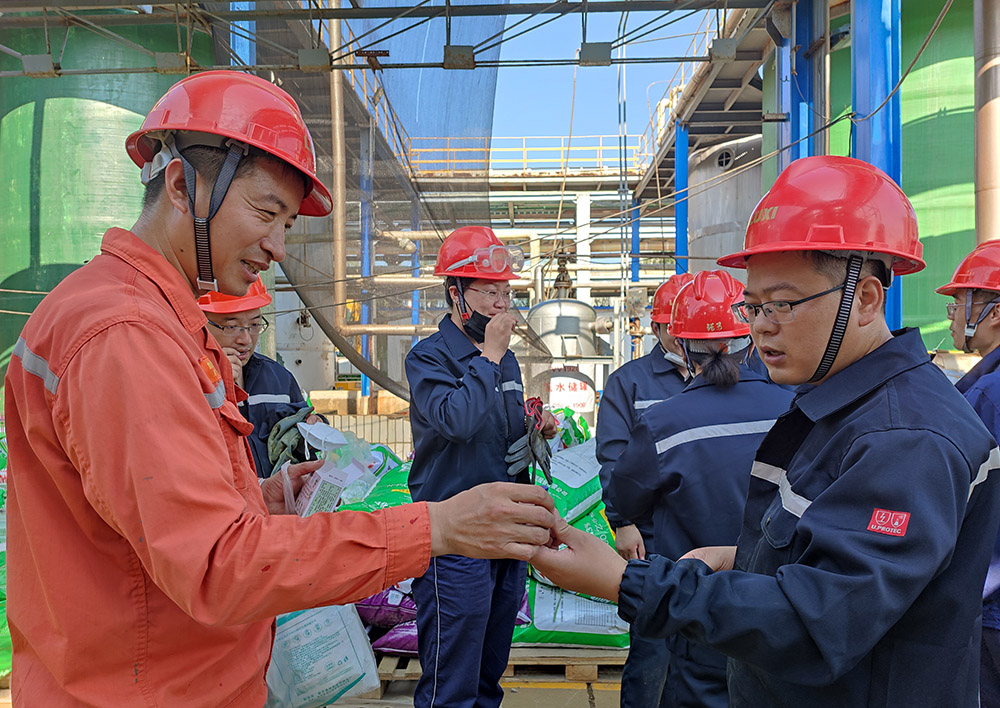 “張主任,張主任,過(guò)來(lái)看一下……”檢修期間,對(duì)講機(jī)里總能聽見工友們這樣喊,黨員干部張景堂是氯磺酸車間工藝技術(shù)上的大拿,有什么問(wèn)題,找他準(zhǔn)能及時(shí)解決。為了大修圓滿完成,他可是做了充分準(zhǔn)備。前期停車方案的編寫,他做足了功課。停車時(shí),他胸有成竹的指揮,氯磺酸單元、制酸單元安全環(huán)保停車。在停車置換期間,他帶領(lǐng)現(xiàn)場(chǎng)操作人員關(guān)閥門,加盲板,車間嚴(yán)格按節(jié)點(diǎn)有序交出檢修。